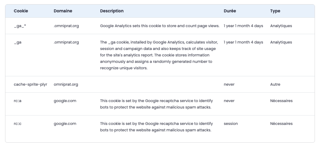 La mesure d’audience et le CAPTCHA du Site reposent sur l’utilisation de cookies des services GOOGLE, dont la